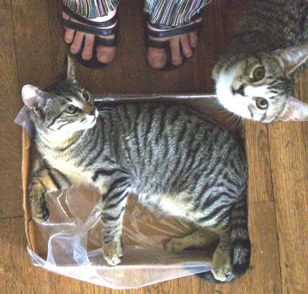 Or maybe some flip-flops. Those would look cute with her little tootsies sticking through them. She is such a hoot. We tried to explain that we can still see her under there, even though she can’t see us, but she still doesn’t get it. Silly kitty. ^…^
