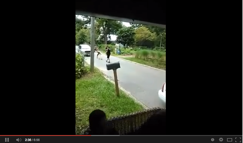 Young is yelling at the police. They tell her to go away. She does not at first. Officer Mahan reports (and it is s seen in the video) that he grasps her left hand to put her under arrest and presumably cuff her. At this point Young resists, or depending on your point of view, changes her mind and decides to comply with the earlier command, and turns to walk away. Mahan shoots her in the back with his Taser.