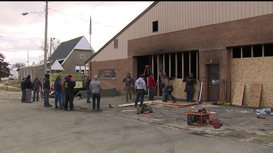 The middle two flows were destroyed, the ground floor was wet but generally ok, and the top floor was mostly destroyed, except for rooms towards the four end corners which had been drenched. Unfortunately the kit that was in the lockers in those rooms was still so badly affected by the heat that it was all useless - the clothes looked ok but just crumbled to the touch.