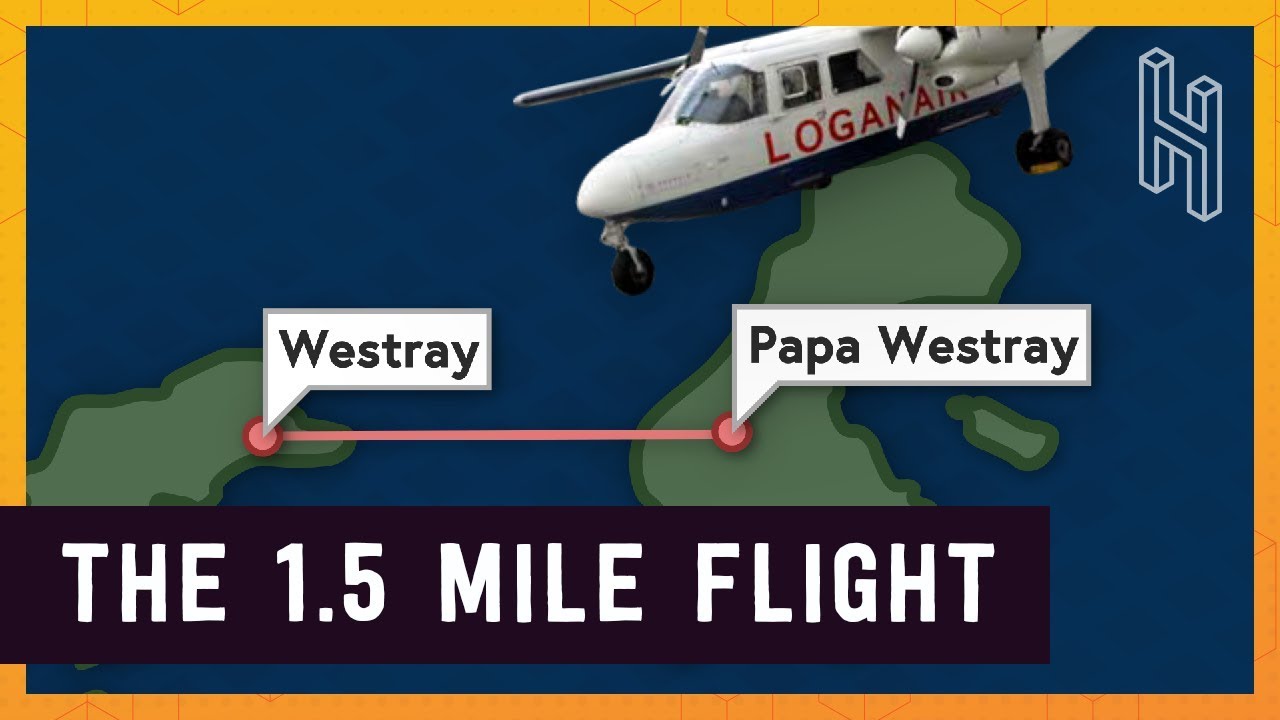 The shortest scheduled commercial passenger airline flight is about 53 seconds long, from wheels off the ground to back down, covering less than 1.5 miles. It goes from Papa Westray island to Westray Island in the Orkneys. The whole flight is a shorter distance than many major commercial runways.
