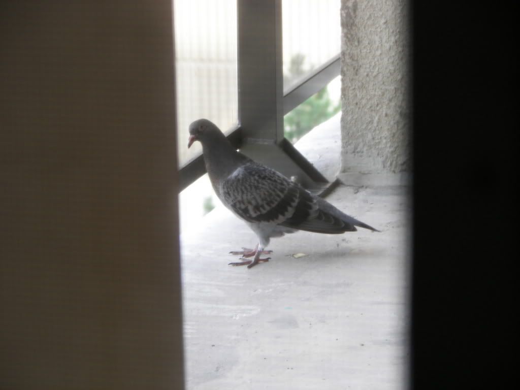 There’s a pigeon on my balcony. He’s been there for the last half an hour, just looking placidly out through the glass of the balustrade, occasionally wandering back and forth. He doesn’t look hurt or anything, he just doesn’t seem to be in a hurry to go anywhere. He pooped on the cement. His name is Jorje. I gave him some bread. He doesn’t seem to be interested in it right now. He is presently sitting down. This may not seem like an event of any significance, but it’s actually the first time a bird of any sort has visited our balcony in the 8 years we’ve been here, so it’s unusual for me.