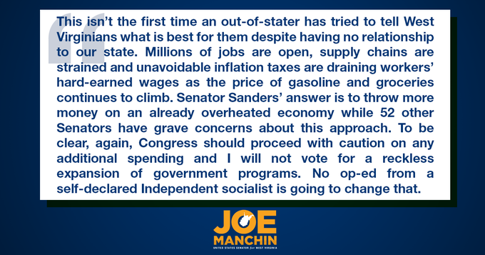 It’s infuriating knowing that this guy holds so much sway. The only thing going for him is at least he is honest about it unlike Sinema who never explains why she is holding up everyone else.