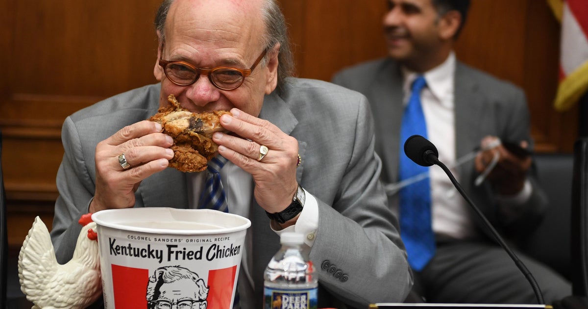 Rep. Steve Cohen, D-Tennessee, started eating a bucket of Kentucky Fried Chicken at 9 a.m. while lawmakers and the press waited to see if Barr would show up on the Hill. Cohen then left the bucket — along with a ceramic chicken — on the table where Barr would have sat.
