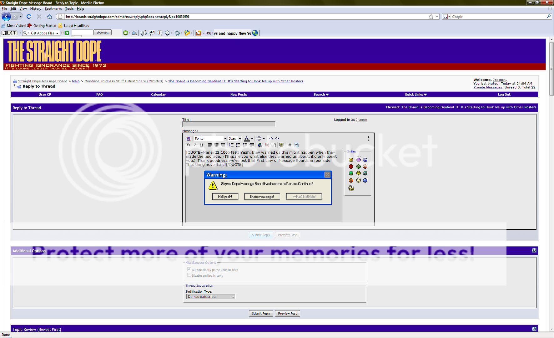 There’s a poster here called Wintermute and if you’ve read William Gibson excellent Neuromancer stuff, you’ll know that’s a sentient AI.