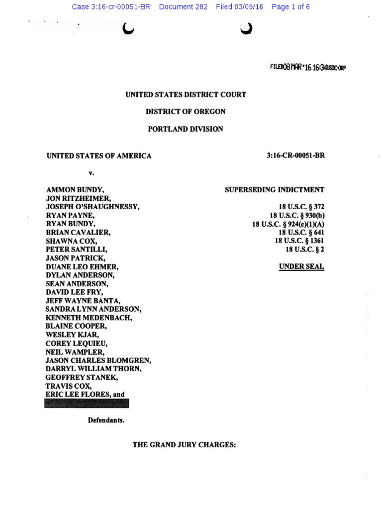 Superseding indictment. Nothing huge. Theft, possessing weapons in federal facility, damage to sacred Native American site. I’m sure there’ll be more indictments to come over the next weeks/months.