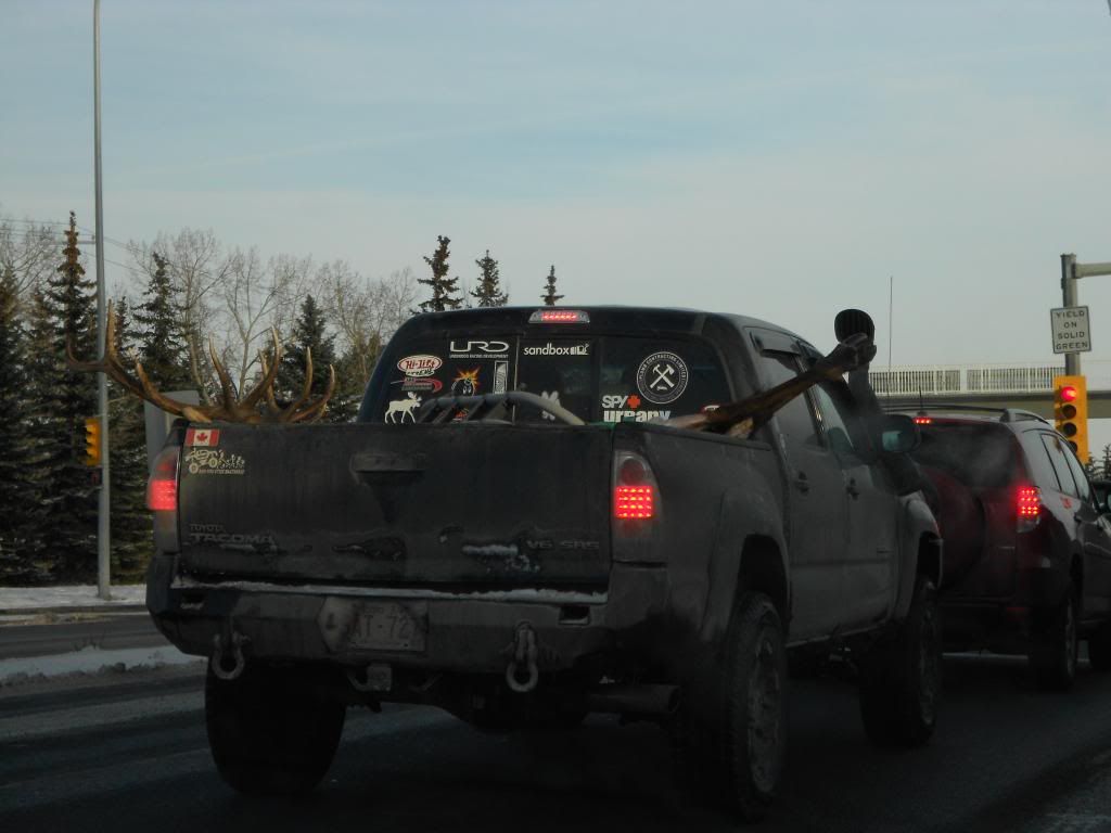 On a different note, we saw this truck driving down the #1 highway (16th. Avenue) in Calgary a couple of weeks ago. I keep telling you guys that we’re not all rednecks out here, but some of us are more redneck than others. ![]()