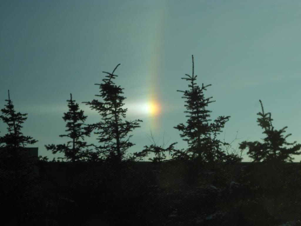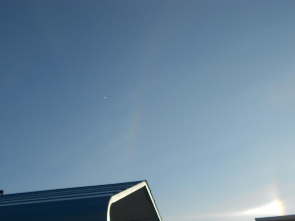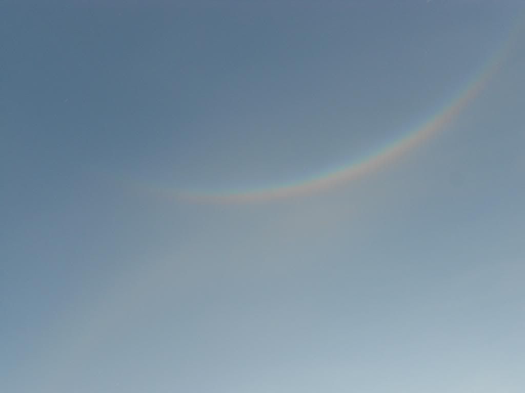 A rainbow arc up in the sky above the sun and sundogs. I have never seen this before - I didn’t even know sundogs could DO that!