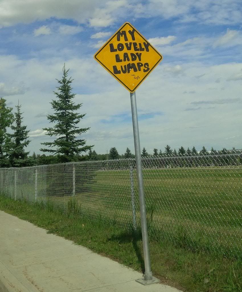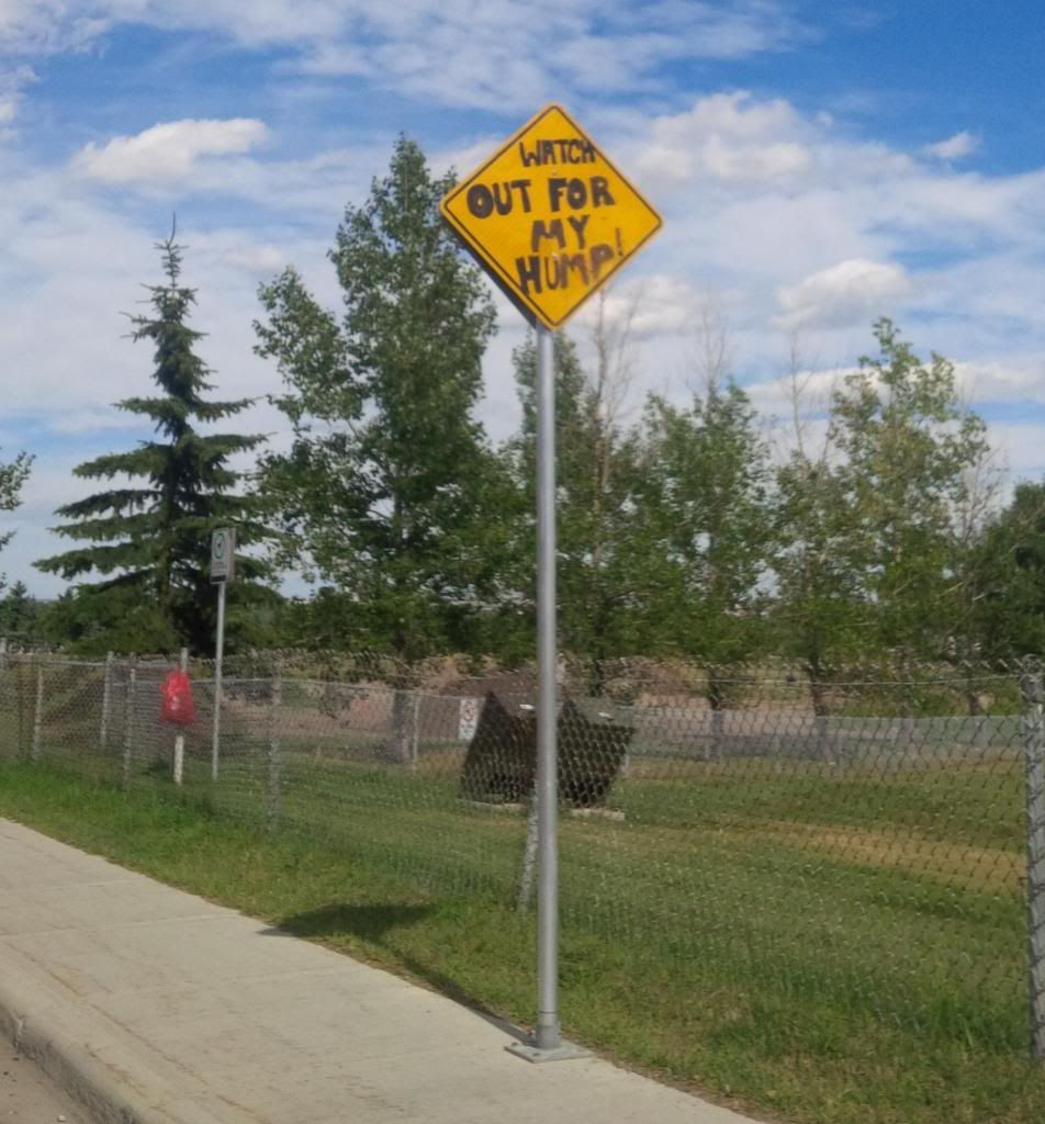 We saw this on 10th Street NW yesterday to warn us of a hump on the road - Watch Out For My Hump!