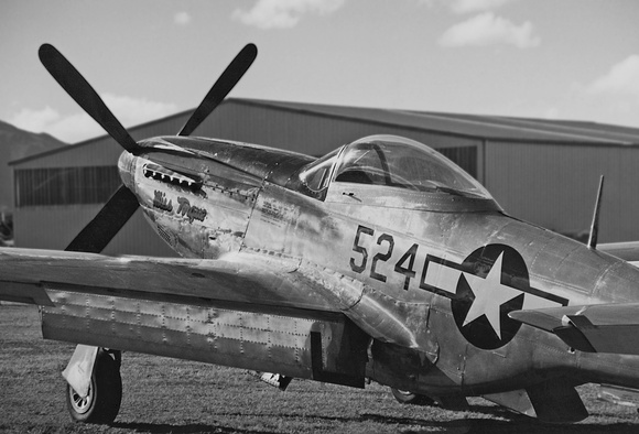I wonder if that was one of the two seater variants of the P-51 Mustang? They must have had another pilot up there as a backup.
