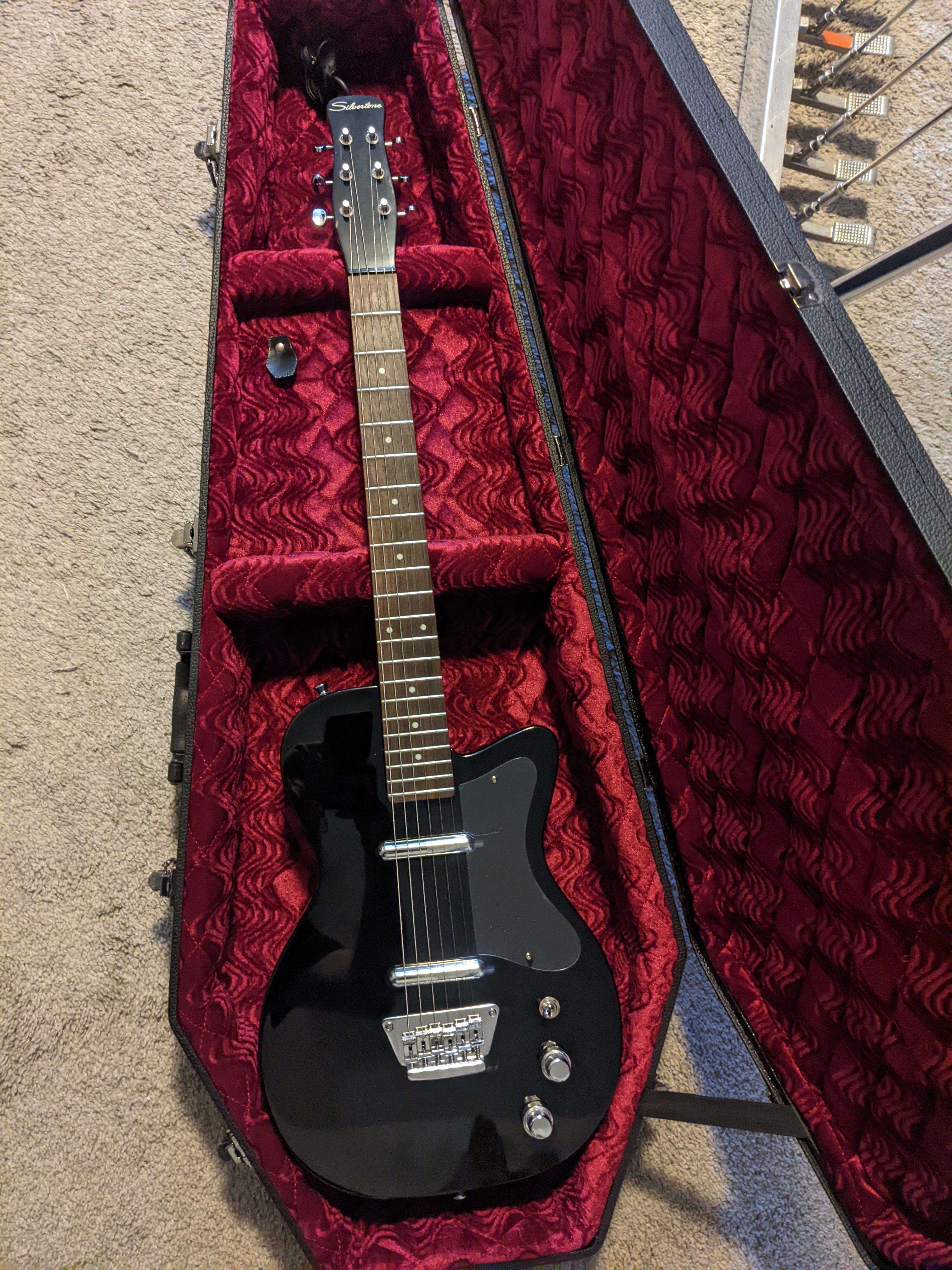 It is odd in that it’s a solid mahogany body instead of the semi-hollow masonite bodies the old ones had. My only guess is that is less labor than building the semi-hollow bodies. I do wish it had an aluminum nut like the old ones. If the current one breaks, I’ll replace it with one. (checks Allparts) Ugh, like every other Danelectro specific part, it’s sold out right now. Oh well, at least I could fashion that part myself, in a pinch.