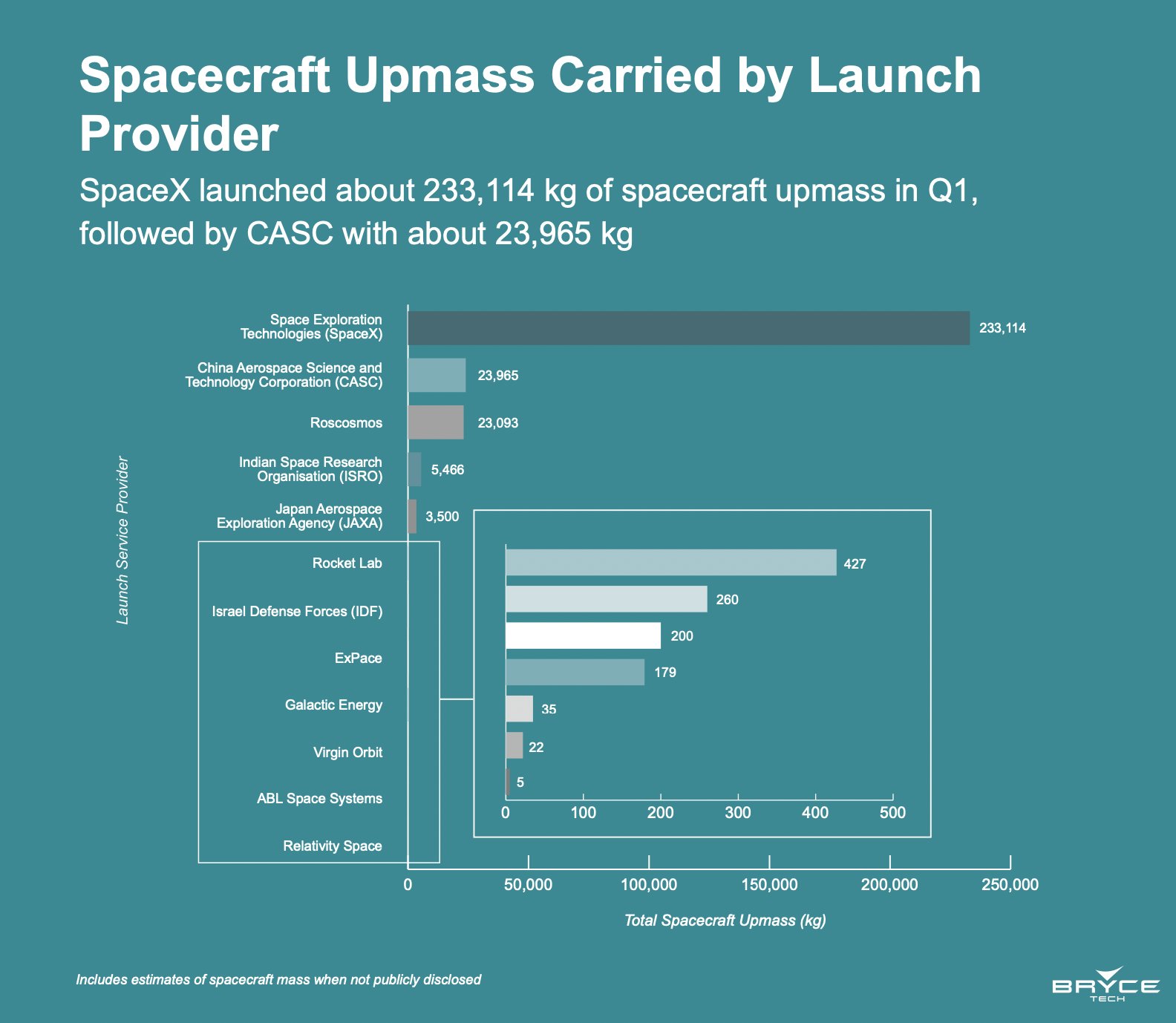 China was number 2, and put 1/10 the mass into orbit as SpaceX. The rate is just incredible. The next 6 launches across all providers are from them: