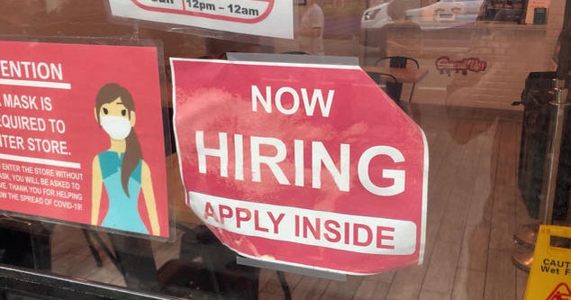 Well, the extra Covid benefit ran out a few days ago, so watch for the next jobs report to see if that had an effect. Economists predicted over 700,000 jobs would be created on the last one, and it came out to less than half that.