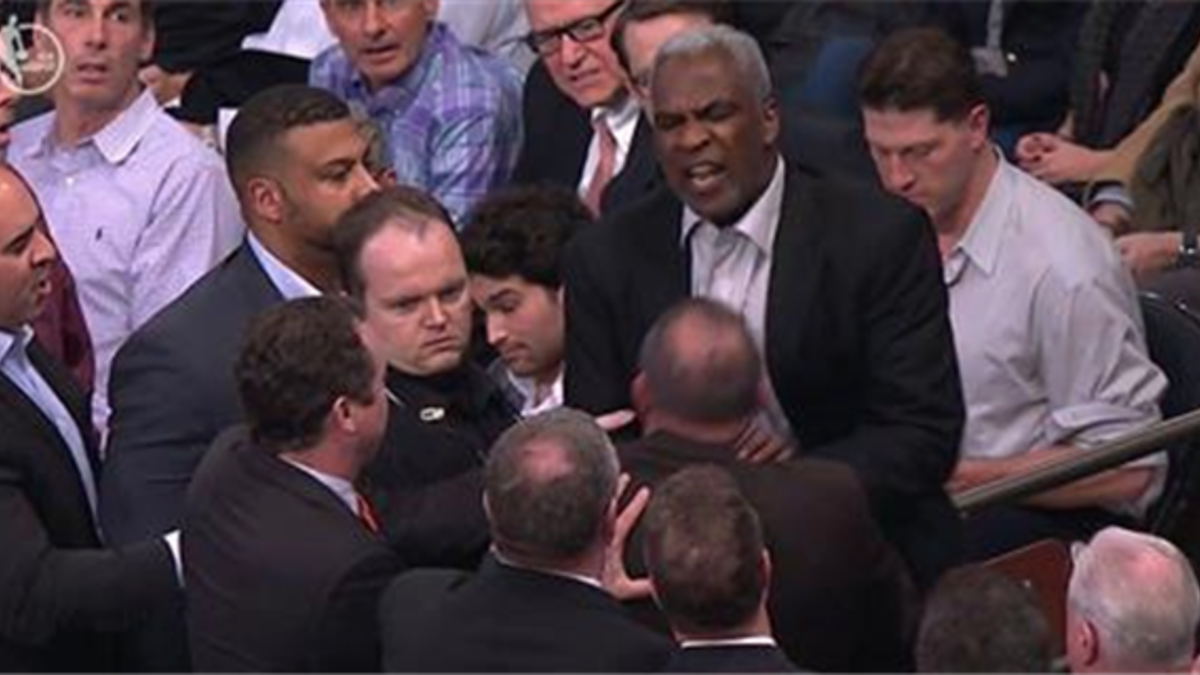 This former player, Charles Oakley, is a mountain of a man so his removal was quite an event.