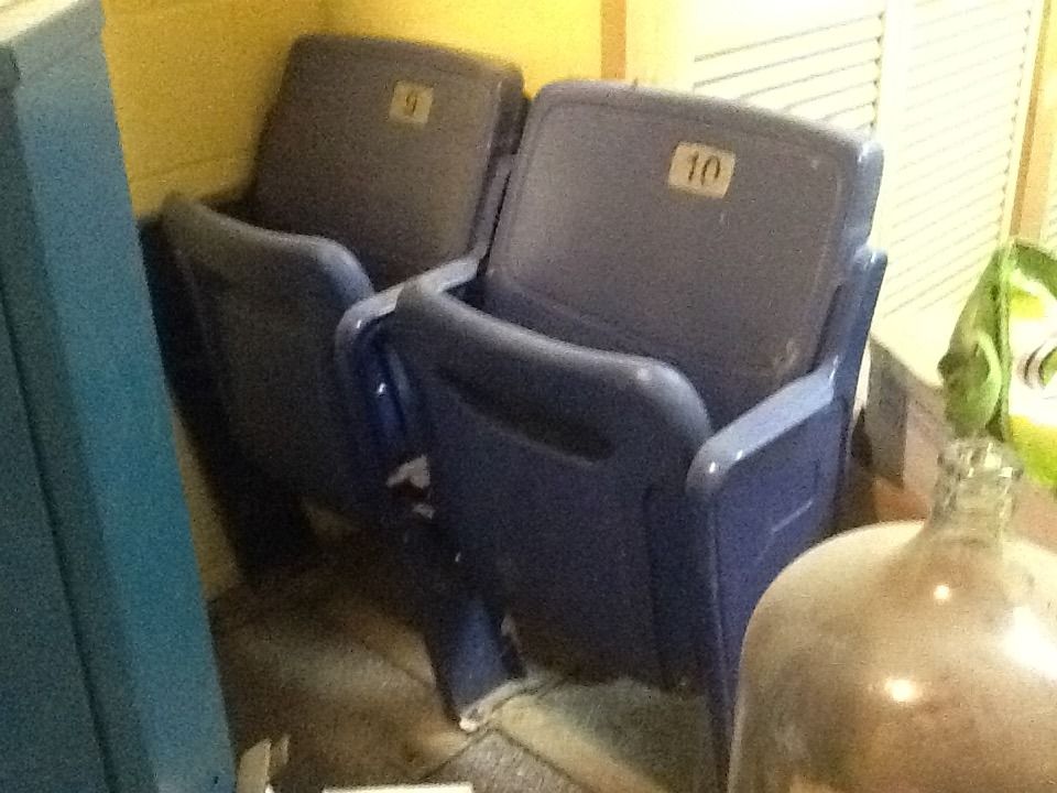Although Three Rivers Stadium is gone, two of the blue seats persist. They are in our basement.