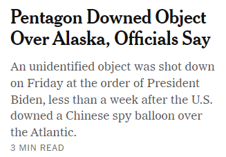 It would be ironic if this became a reverse Roswell - shooting down a “weather balloon”, only for it to turn out to be an alien UFO.