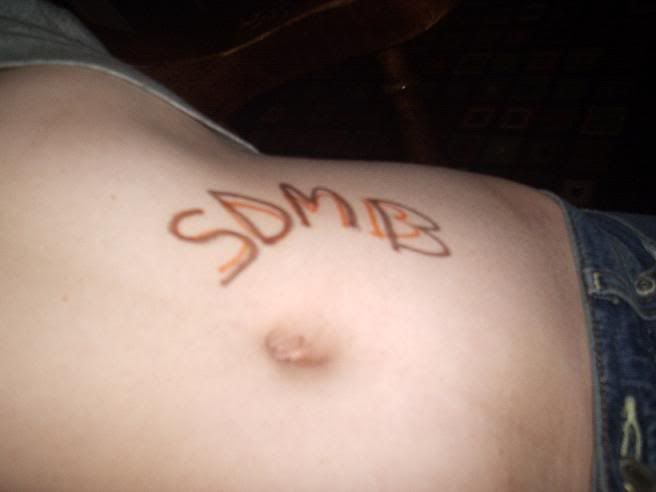 Or possibly on a random, non-sexual part of the body? Like a stomach?