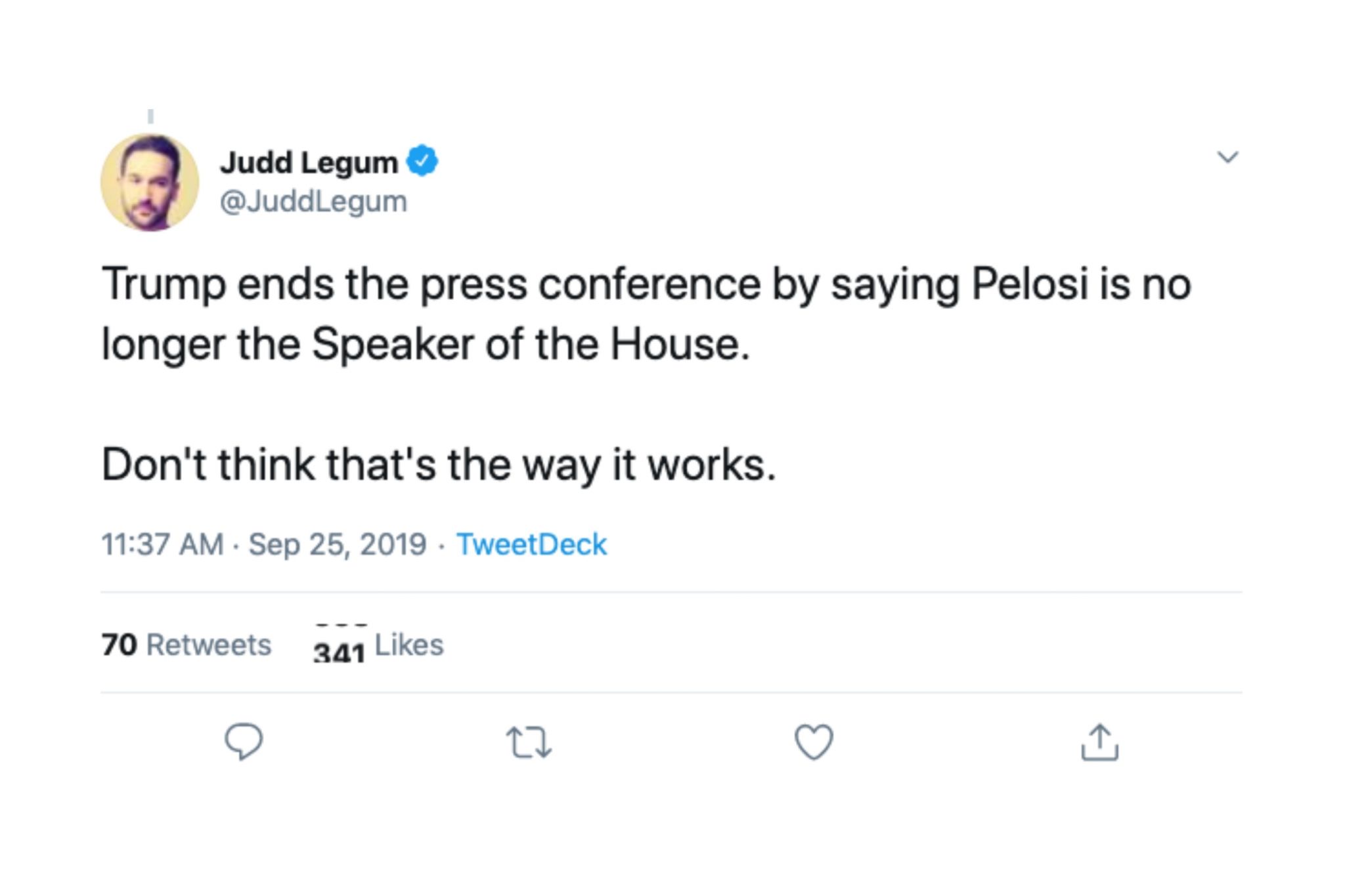 “Nancy Pelosi, as far as I’m concerned, unfortunately she’s no longer Speaker of the House.”