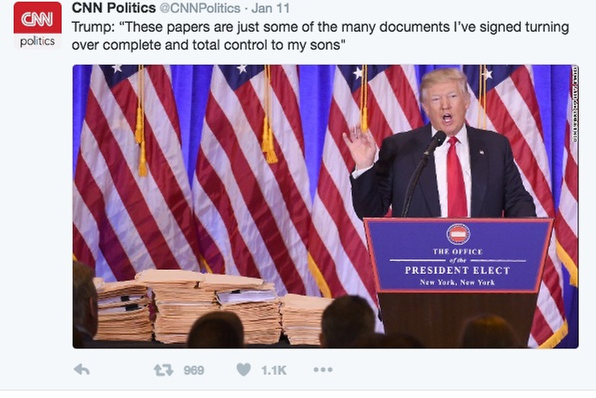 Oh, did anyone notice how a CNN picture showed that the big pile of papers that Trump claimed that they demonstrated that he was giving his companies to his sons were most likely blank pages?