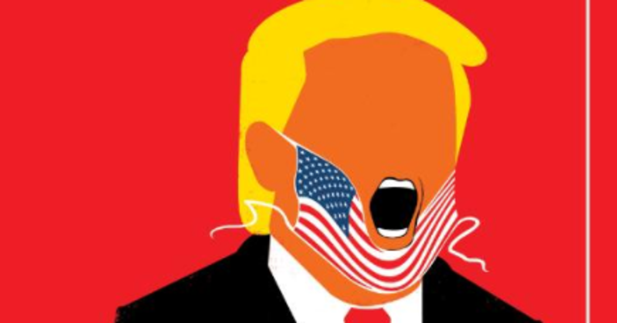 TIME Magazine’s new cover. A drawing of Individual 1 with his mouth open, an American flag mask dangling below it, with the caption, “There’s a right way to reopen America. This isn’t it."