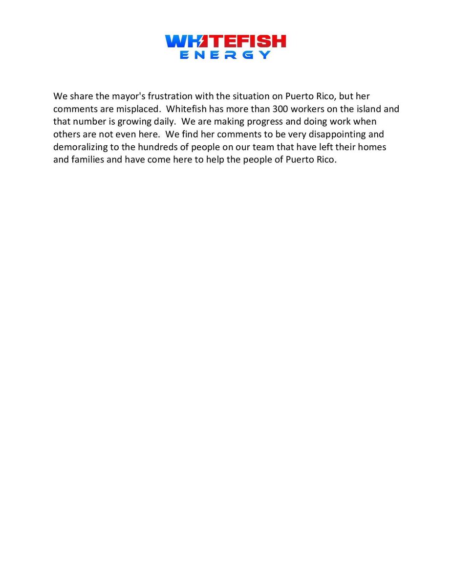 The mayor of San Juan criticized the Whitefish contract, whoever the person is who runs their Twitter account threatened to pull out and leave them high and dry, as if nobody else can fill the void, if she doesn’t shut up.
