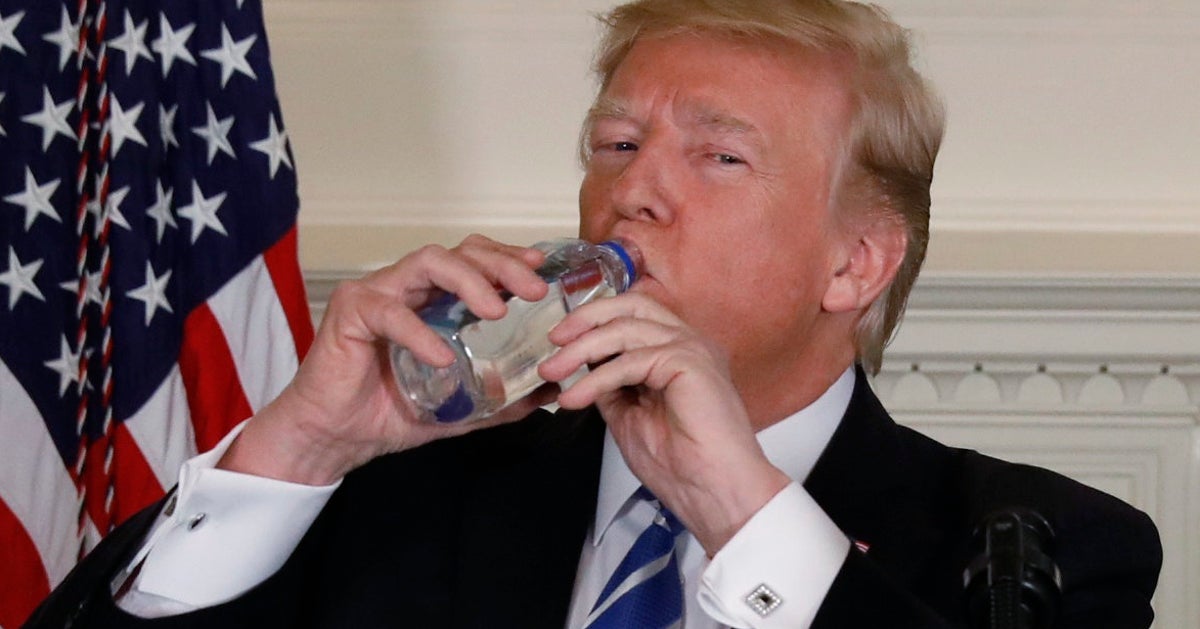 Evidently the message didn’t stick, at least with Trump, because there he was, opening the bottle and drinking from it in a thoroughly ludicrous fashion