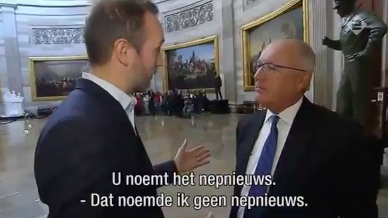 US Ambassador to the Netherlands denies that he ever made comments about Muslim terrorism in the Netherlands and calls a reporter who called him on it fake news. When pointed to a video which shows him saying it, he says, “Well, I never said it was in the Netherlands, and I never called it fake news.”