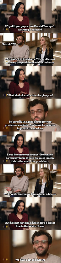 Graft, grift, larceny, bribery, just another day for the family business. Interview with the CEO of Kalshi, one of the predictive betting scams.
