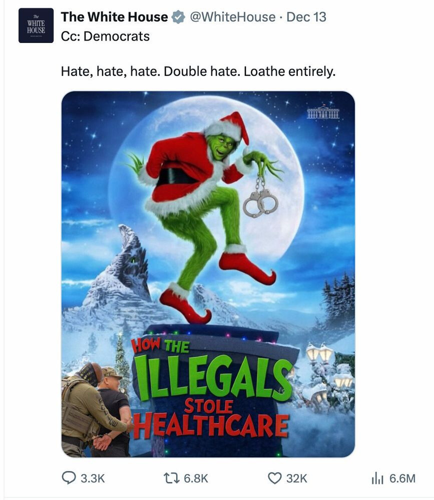 What does this even mean? I’m not familiar with the Grinch story, so is this referencing some lines from that? Not surprising, though, that they continue to misuse children’s literature for their propaganda.
