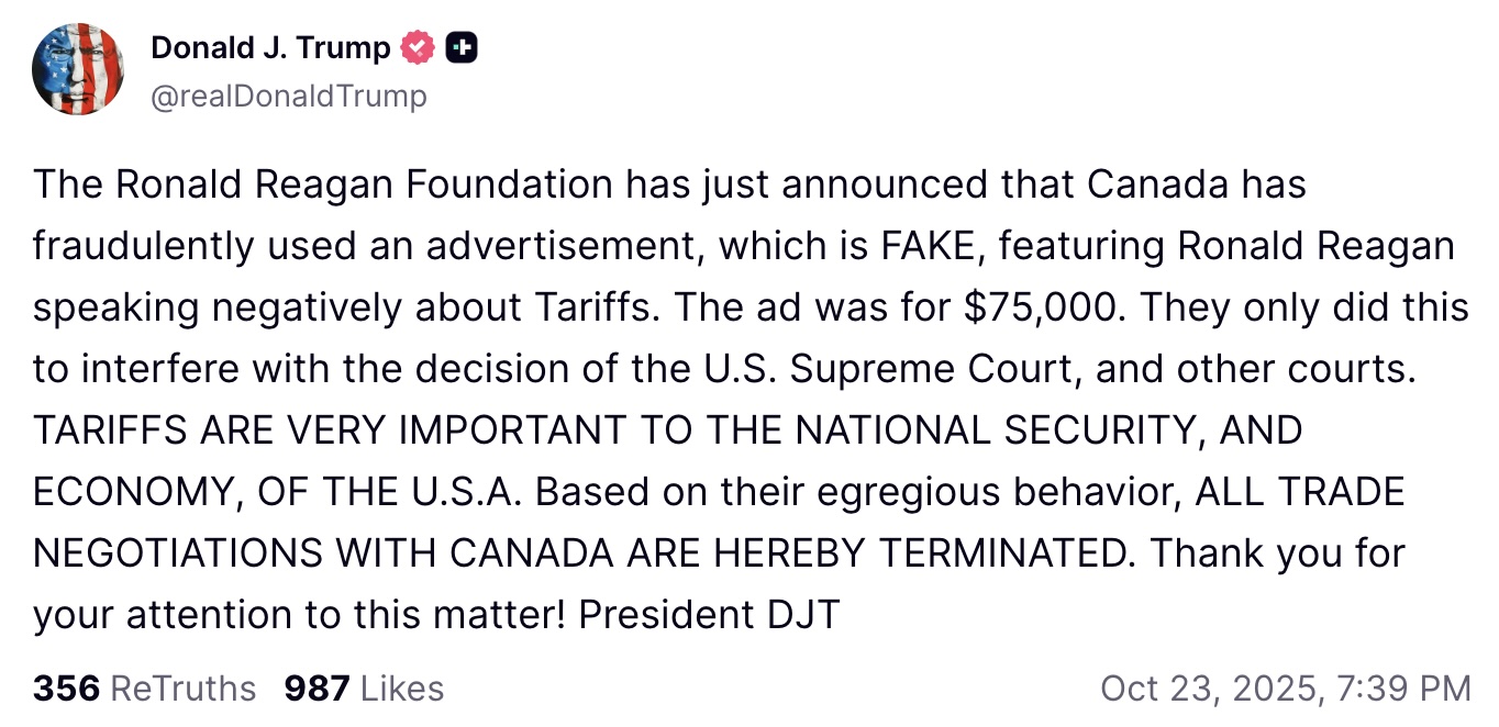 Trump says he’s ending trade talks with Canada over TV ad