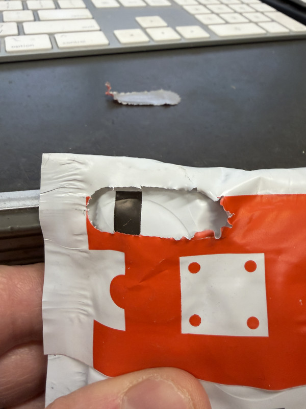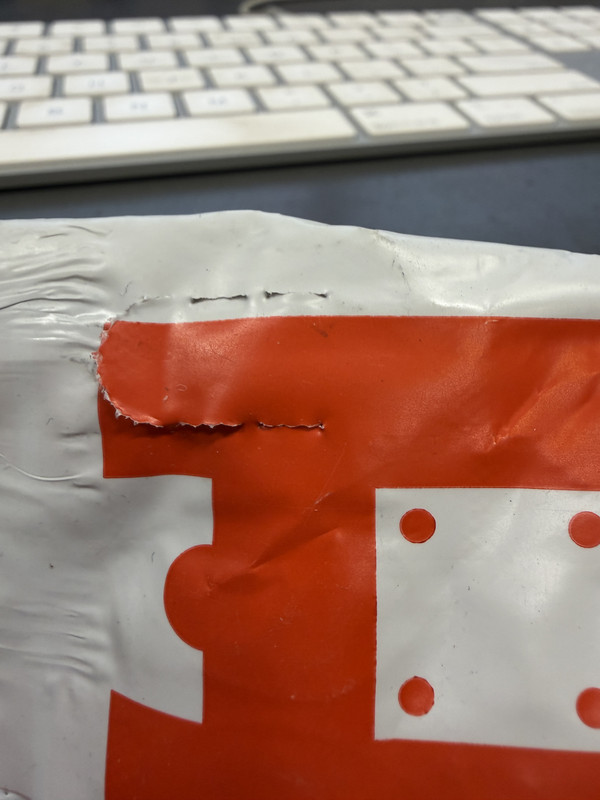 I just received a package from DigiKey. A few years ago, they started to ship in custom-printed bubble-pack mailers. It’s a plastic envelope with a self-seal flap. The flap has a pre-cut tab, presumably for tearing the flap open, but - it never works. Never. The tab always rips right at the end of the perforations.