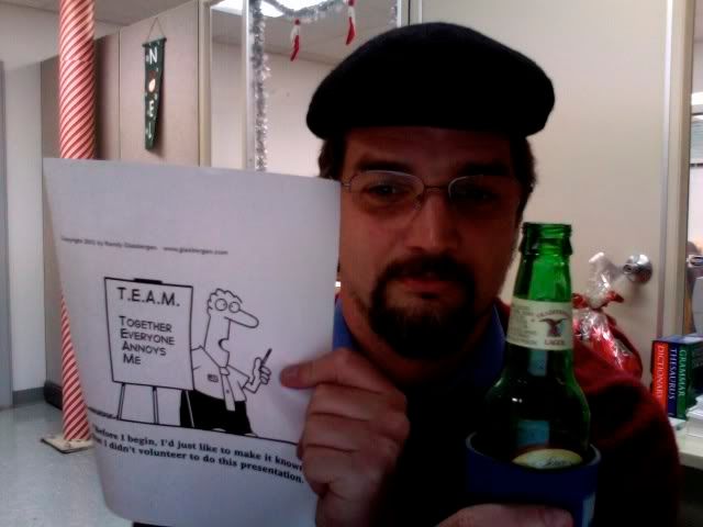 We have Yuengling beer this year at our party here at Technical Thingies, Inc. And a band lined up for a little later. Here’s me with the cartoonswampbear said reminded him of me.