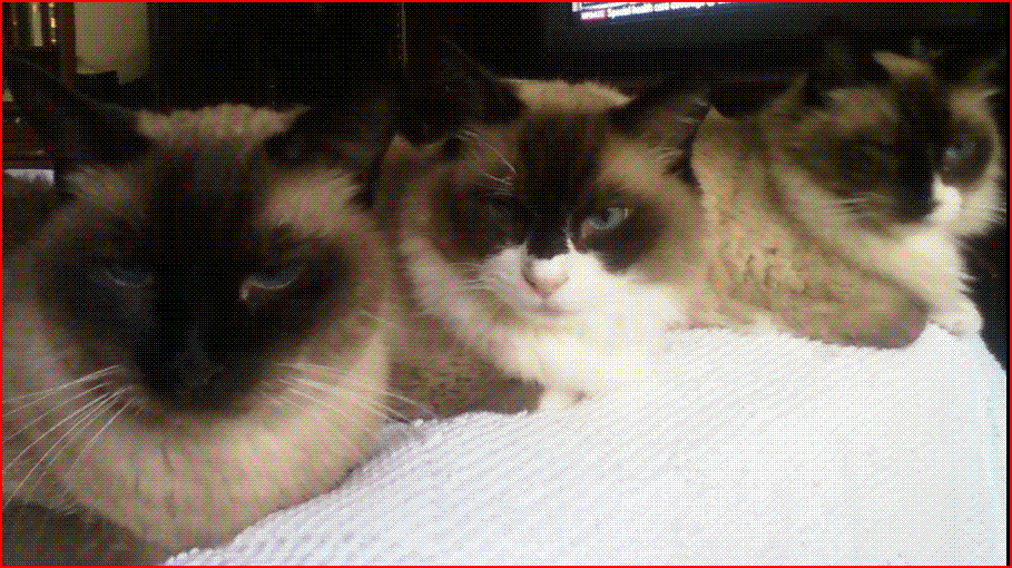 Anyway, this incident happened once when we had the bathtub full of water in the middle of the day for some reason since forgotten; it was just plain clean water. Our three Himalayan/Ragdoll mix cats were chasing each other all over the apartment at breakneck speed, all the more remarkable since they were all over 16 when this happened.