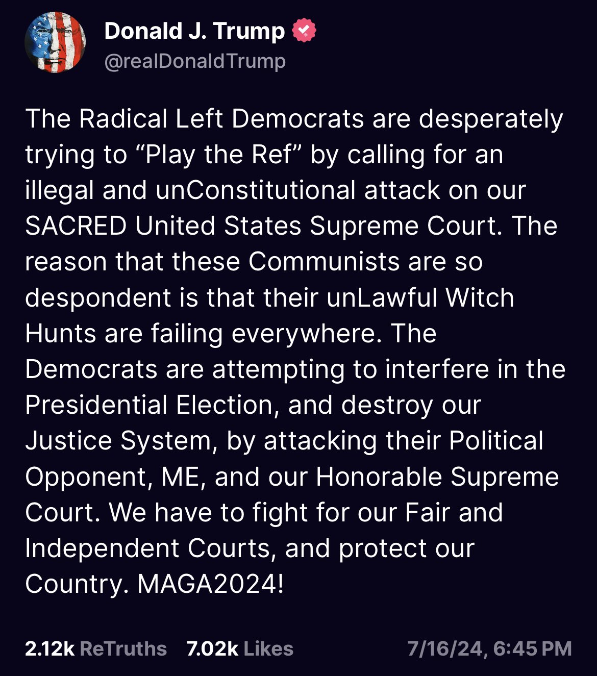 He also described the 2020 election results as “SACRED”. He keeps using that word … I do not think he knows what it means.