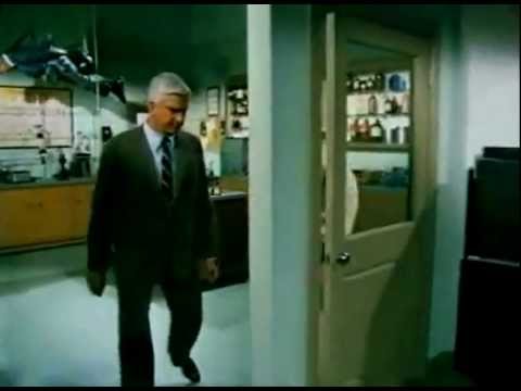 It’s not quite literally the wall, but this bit that was used several times in Police Squad comes close.