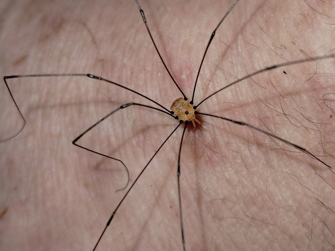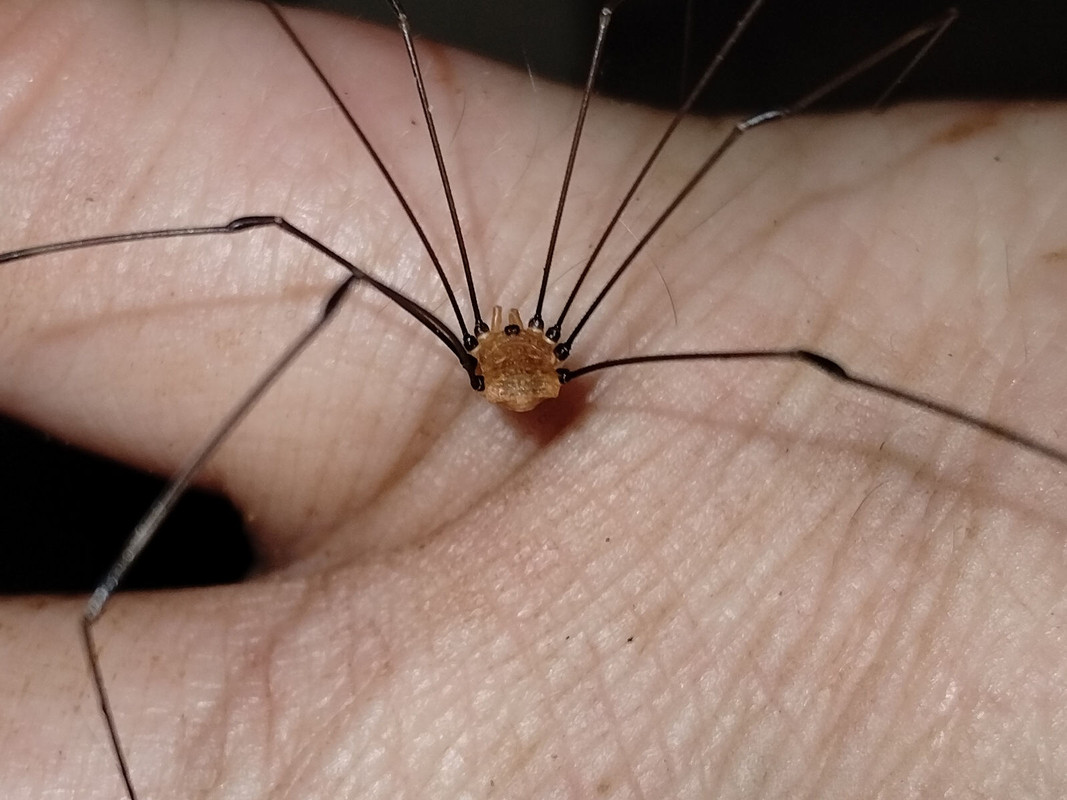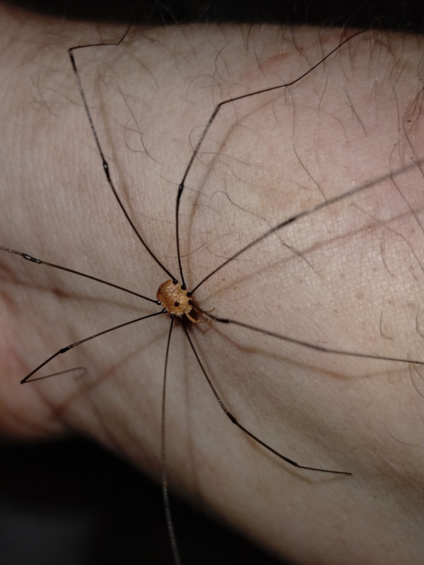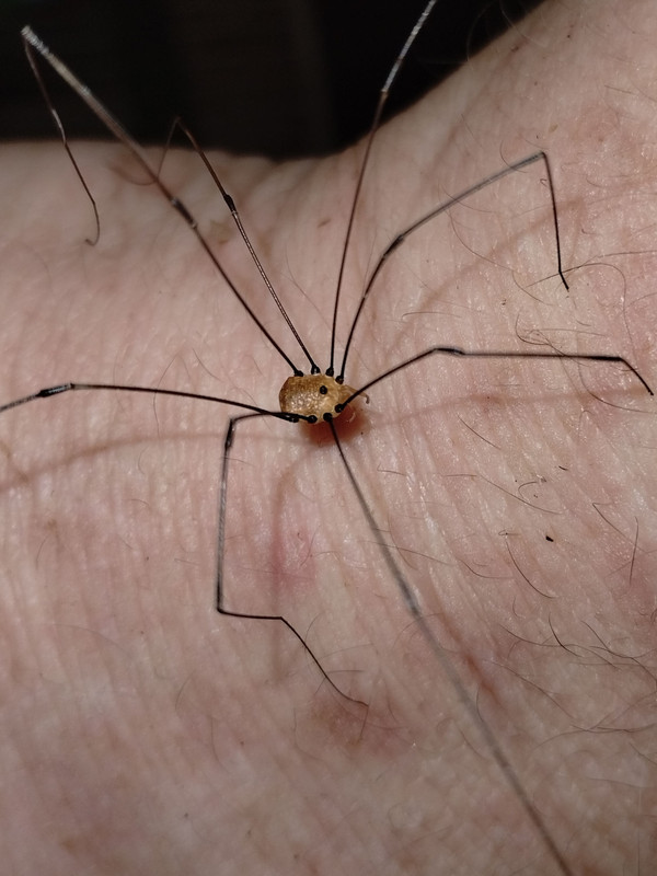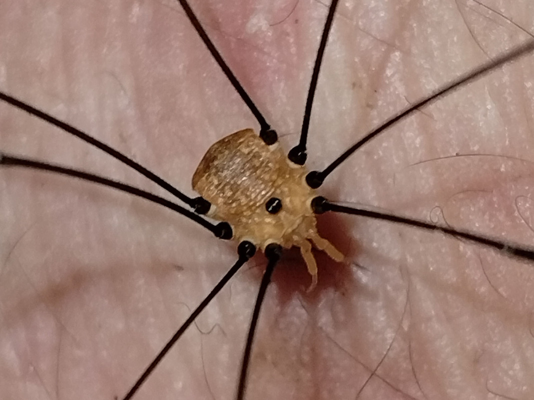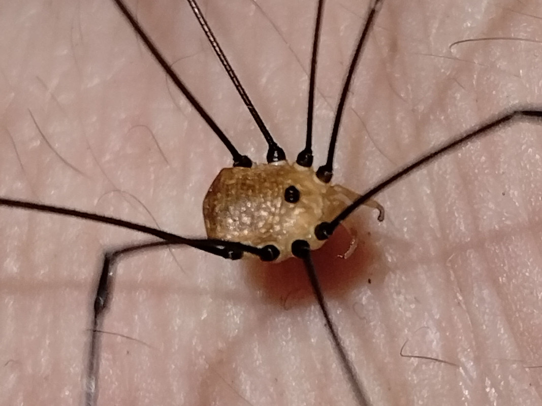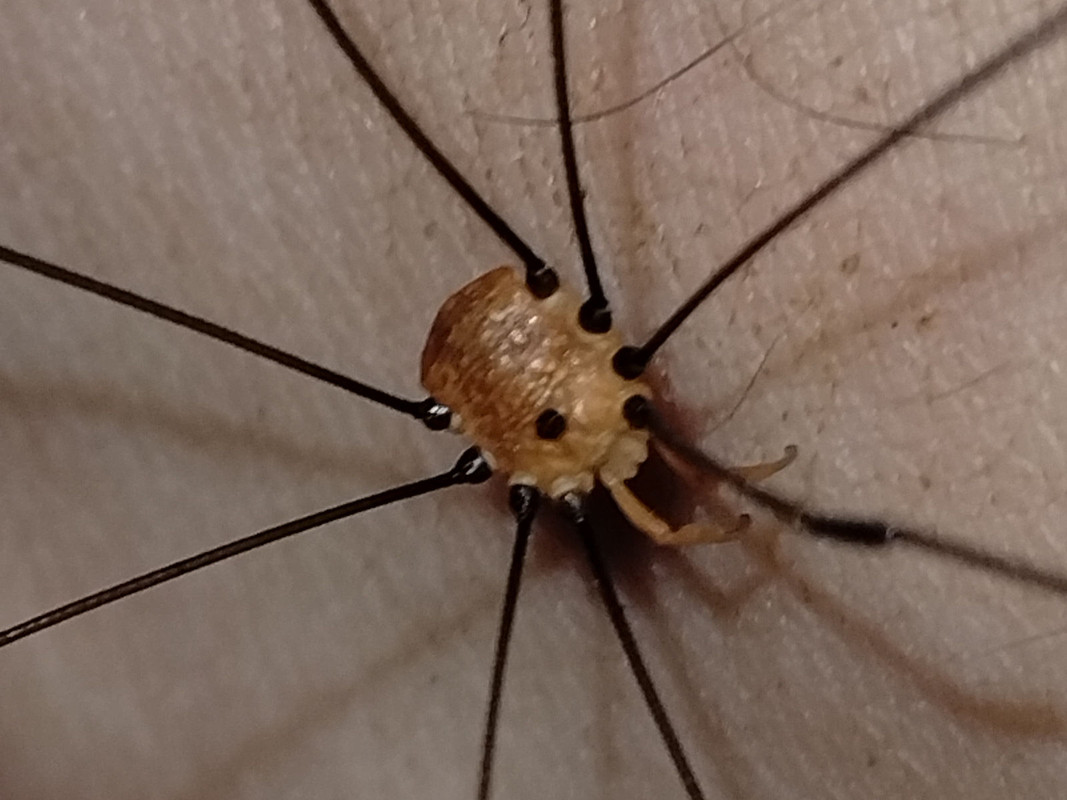 Last October my 3-year-old phone suddenly died the death of a broken USB port and my cheap emergency replacement had a truly awful camera. I got a replacement a few weeks ago and enen though the reviews mostly described the camera in very mediocre terms, I think the shots I got of this harvestman tonight are pretty good.
