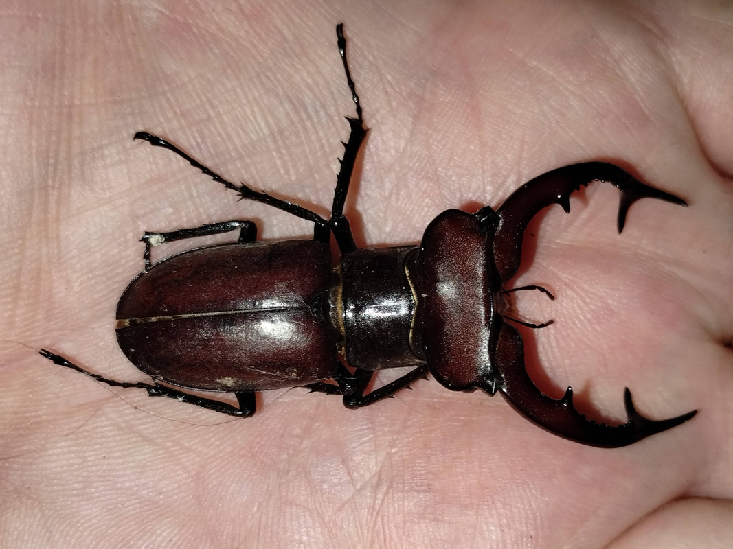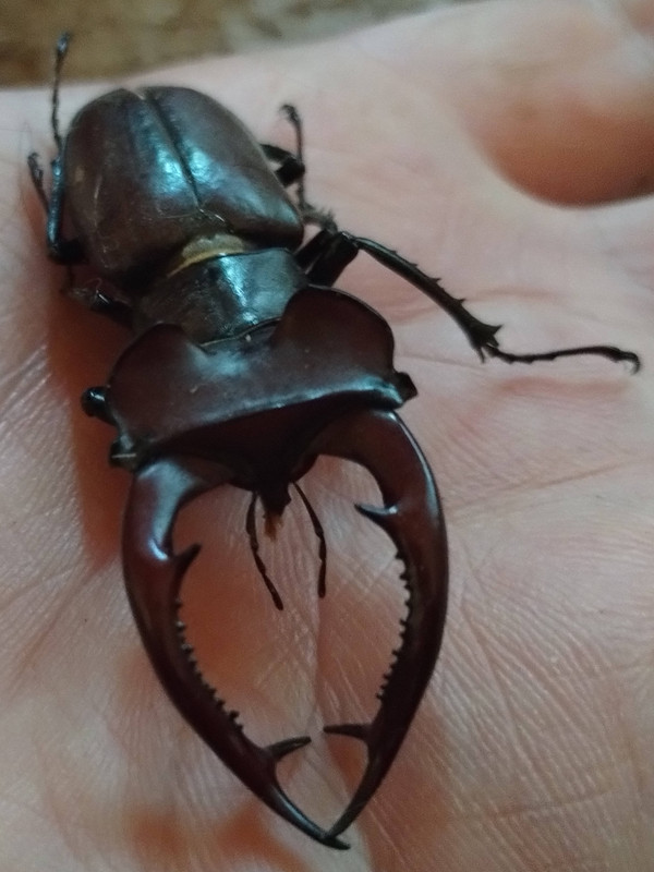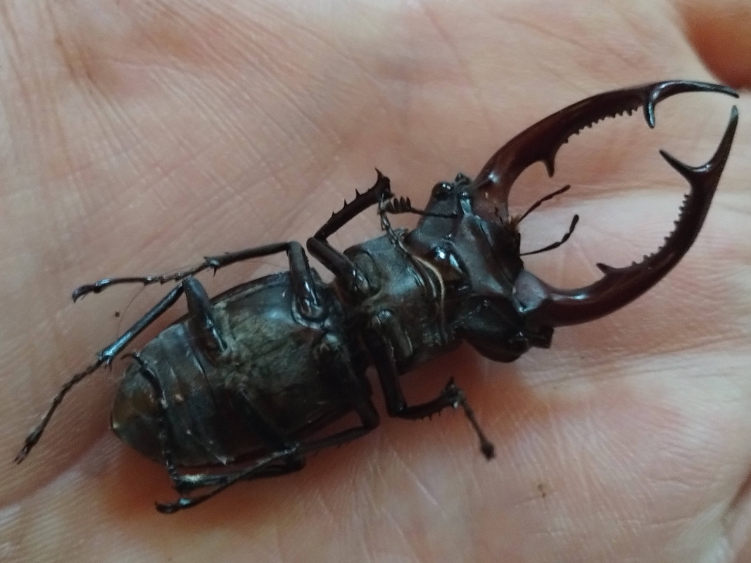 Only yesterday I was thinking about how it had been many years since I saw a stag beetle. Then today I found this fairly small one on its back in my wheelbarrow. It was nearly a former beetle, don’t know if it was half-cooked or just approaching its normal sell-by date.