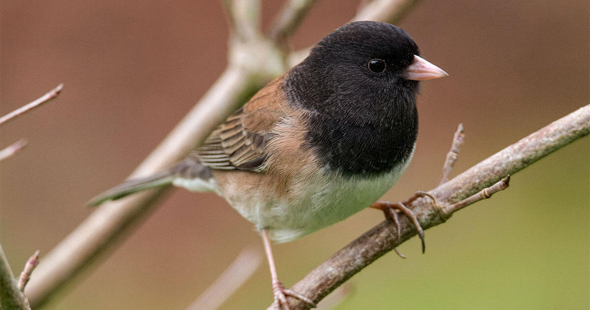 My bird feeder is starting to draw customers, and today I saw what looked like a pink-sided variant on the familiar slate-colored juncos. It certainly acted like a junco, and was shaped the same, but had brownish-pink sides.