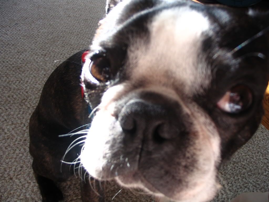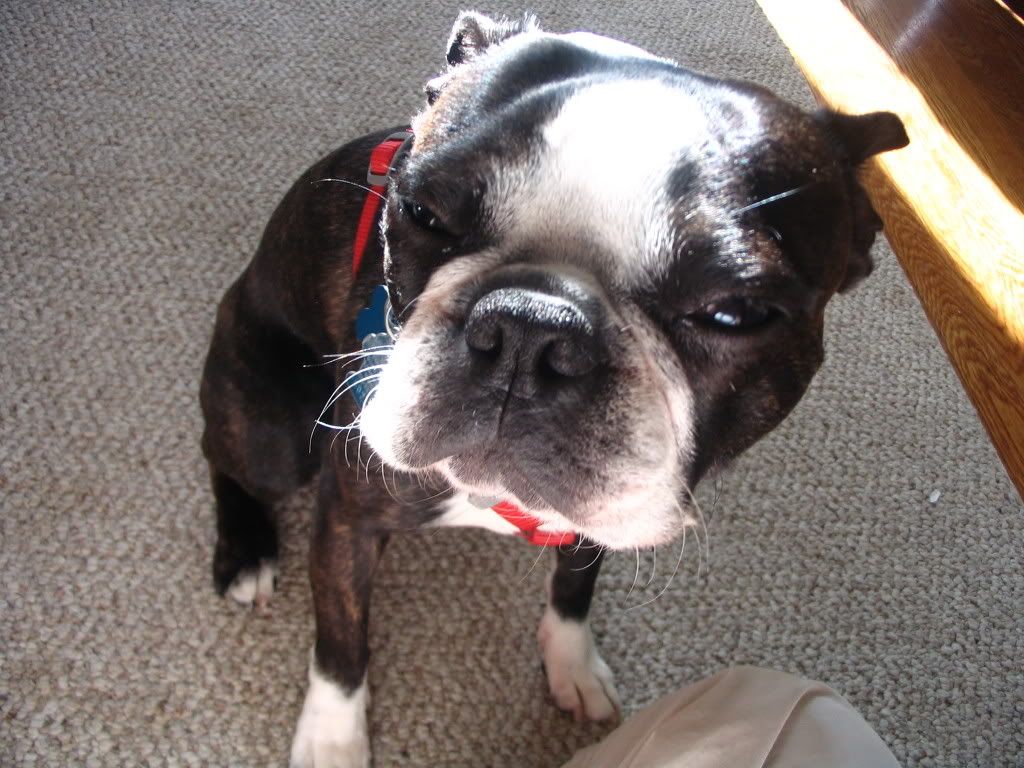 My Boston Terrorist woke me the other night by standing on my chest. I opened my eyes to see him staring down at me morosely. I said “Gotta Pee?” and he said <grumble>, which I’m pretty sure mean ‘well, duh!’