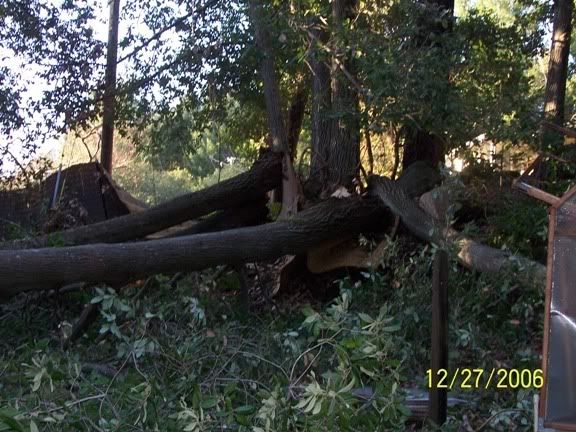 Well, none of the huge trees in our central Indiana yard came down, as I had feared. Of course that’s because I stayed awake all night, listening to the wind. Y’see, then I’m ready to jump out of bed, gather my husband and one-year-old, and get us to safety in the event one of the trees started to fall on our house. :rolleyes: I wish I could just sleep through it like everyone else in the house, but I remain firmly convinced it’s my stoic guard that keeps us safe from house-eating trees.