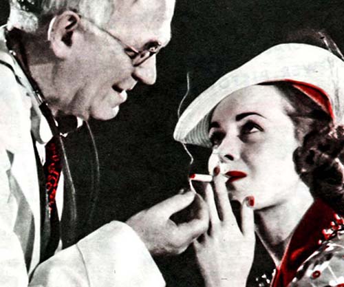 Cigarette ads until the 1950s made many bold claims. These often involved “doctor recommended” brands, with “the majority of doctors (from all specialties) preferring Camels, which “caused not a cough in a carload” and indeed cured catarrh and other conditions.