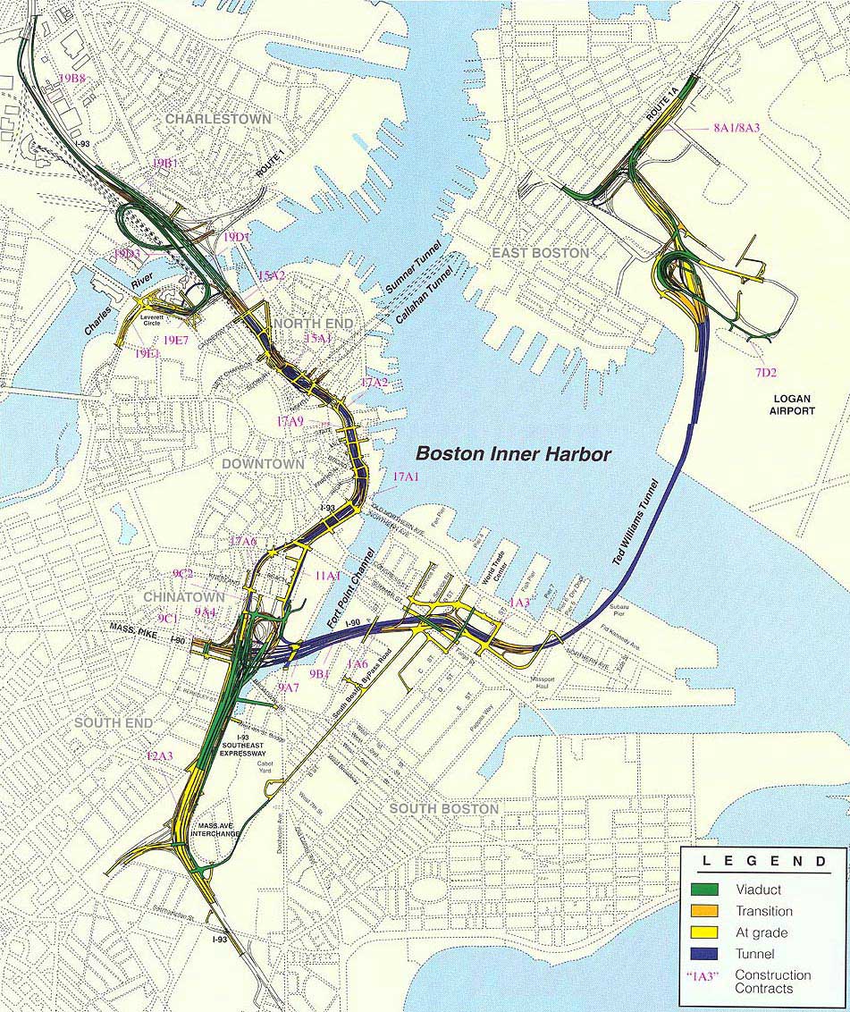 — the Ted Williams Tunnel (map photo) extending Interstate 90 to Logan International Airport),