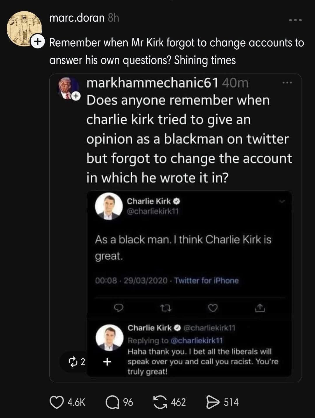 Should we call groups of people whitewashing his statements and history a circle Kirk? (I wish I’d thought of this.)
