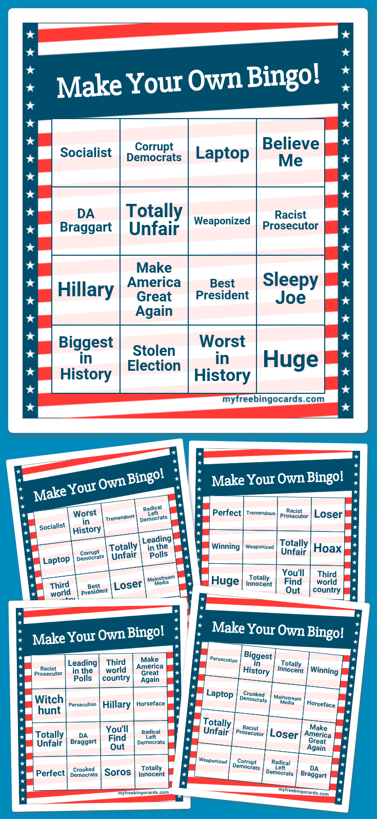 I have created a series of 30 bingo cards, which can be accessed through this link. I think everyone will get their own individual card.