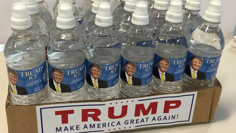Trump sent a care package of water and towels to Rubio. Trump is pictured on the items.