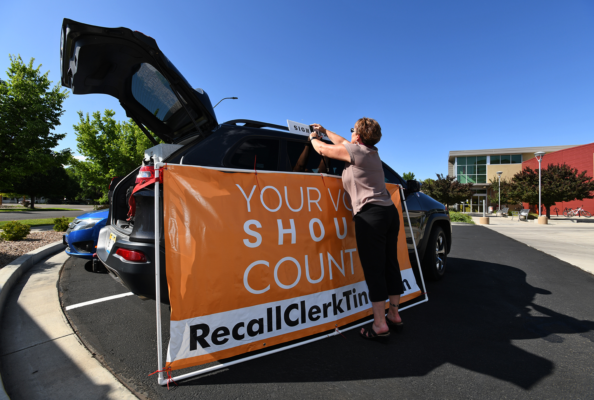 The former stewardess, who was elected after her predecessor was term limited - is apparently some sort of one woman election-fuckup dumpster fire. After she was elected, 24 of her 32 employees quit. The primary election was a total clusterfuck, for days afterwards people were finding ballots blowing around in the parking lot of the election office. Oh, and she forgot to have anyone empty the ballot drop box right outside of the election office, causing almost 600 ballots to be disregarded, bringing about an unsuccessful effort to recall her.