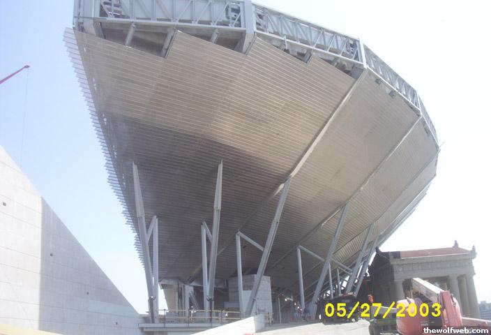 It has been said that the result looks like a spaceship landed on the stadium, a charge I will not endorse for fear of being sued for libel by extraterrestrials. But it is safe to say that the project is the most jarring union of youth and age since Anna Nicole Smith married an 89-year-old billionaire.