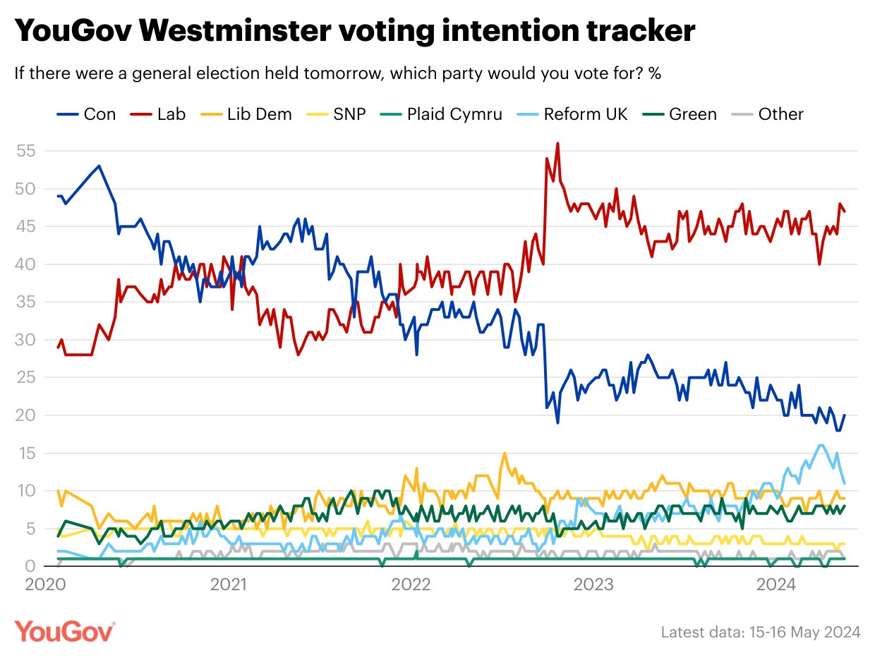 Rishi Sunak has announced the 4th July 2024 as the date of the UK General Election in a vote the ruling Conservative government are expected to lose heavily.