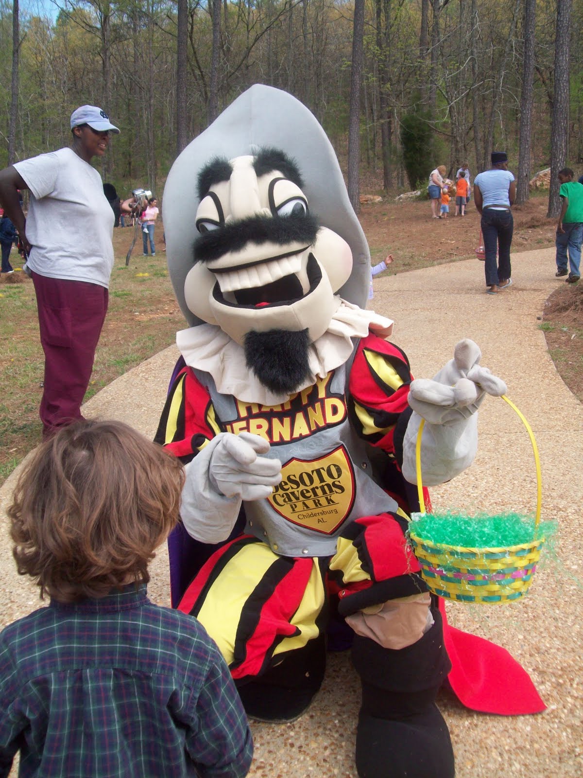 Hernando de Soto was the first European to explore much of what’s now the southeastern U.S. and he was an absolutely total bastard. His men killed southeastern Indians by the thousands with guns, steel, and dogs (literally- they would throw them to the dogs they carried), they tortured and raped and stole their way from what’s now Florida through Georgia and the Carolinas and Georgia and Tennessee and Mississippi and Arkansas and Louisiana, they burned towns and destroyed millennium old cultures, and that’s not including the multitudes who died from the diseases they introduced. Thus DeSoto Caverns, a tourist trap in north-central Alabama, chose him as their mascot, Happy Hernando! (“Hey boys and girls, would you like some smallpox? Or would you rather go and pet Señor Fluffy the War Mongrel?”)