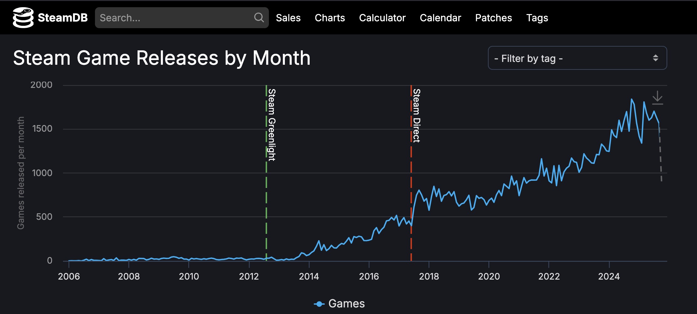 20 years ago, we were lucky to have a few dozen releases a year. Now, there’s nearly 2000 games released per month. Nobody can keep up.