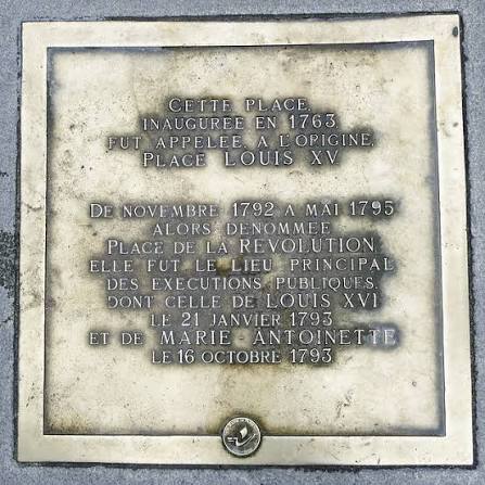 I’ll admit that while in a Paris a few months ago, I sought out the site of the guillotine during the Terror where Louis XVI, Marie Antoinette, Danton, and Robespierre were executed. All there was to mark the location was an easily missed plaque in the ground near the Egyptian obelisk.
